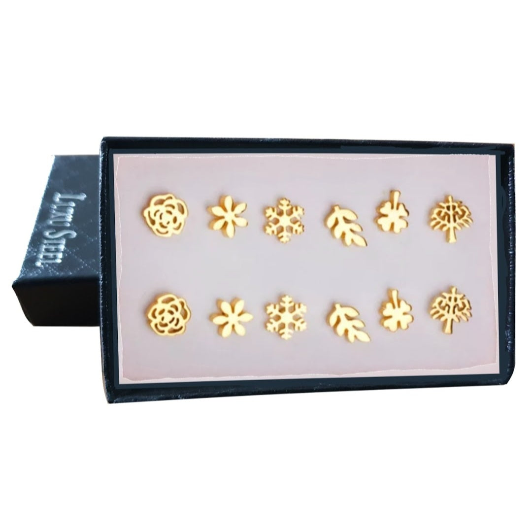 Ontdek de ultieme verfijning en stijl met ons Luxe Doosje Oorbellen - een betoverende collectie van 6 prachtige oorbellen in een schitterende gouden kleur. Elk paar oorbellen is vervaardigd met zorgvuldig geselecteerd roestvrijstaal, wat niet alleen duurzaamheid garandeert, maar ook een tijdloze glans behoudt.