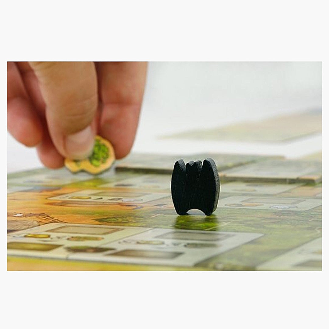 In het spel heb je 3 werkers, waarmee je elke ronde 3 acties kunt uitvoeren. Je kunt bijvoorbeeld je stad met terrein- en locatiekaarten uitbouwen. Elk daarvan biedt verschillende velden waarop je families, dieren, bomen, fruit en vooral ook vleerhonden kunt bewaren. Een ingenieus mechanisme met actieveldtegels zorgt ervoor dat de actievelden per ronde wat van elkaar verschillen.