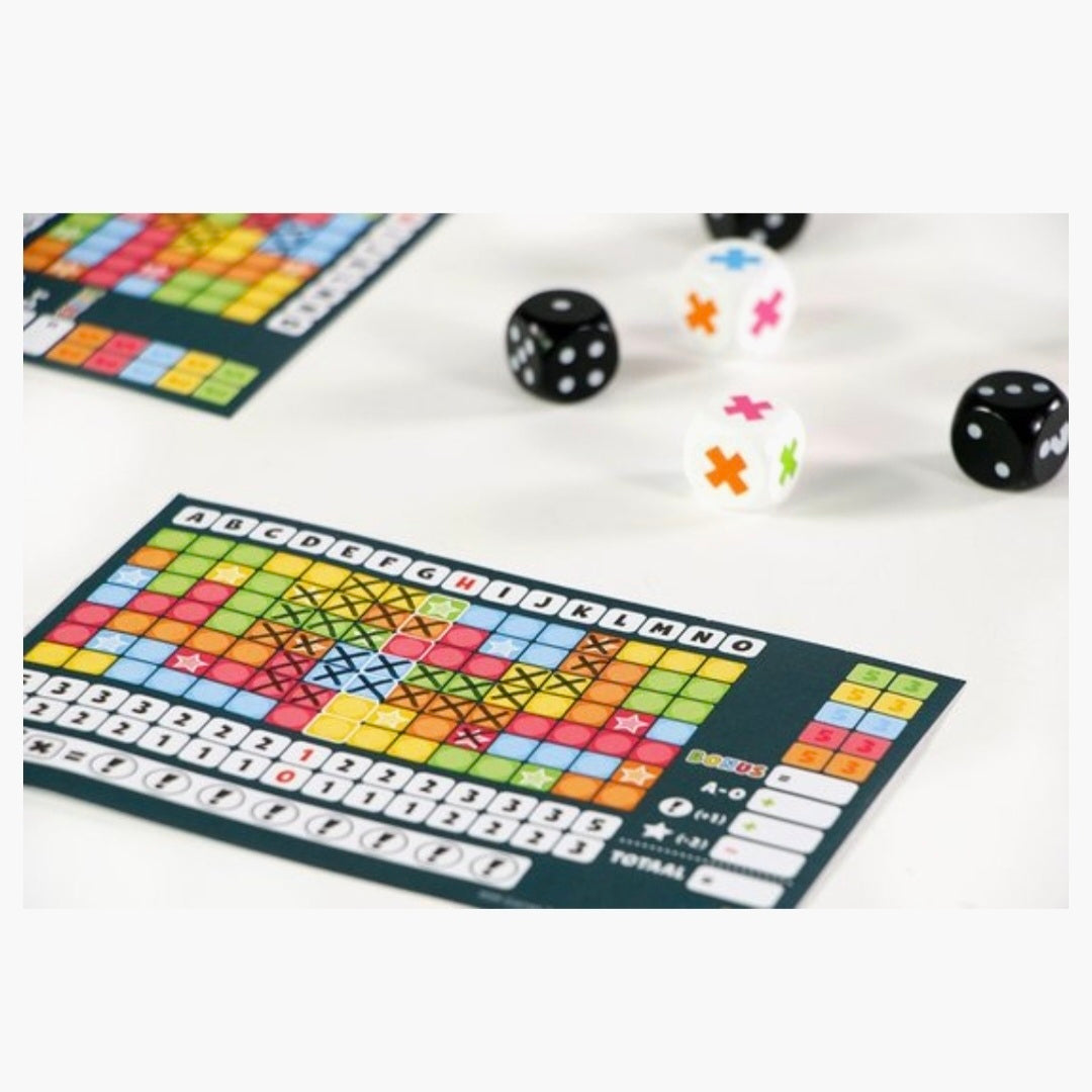 Kruis vakjes op je speelveld aan om zo snel mogelijk kolommen en gelijk gekleurde gebieden te vullen. Elke beurt kies je een gedobbelde kleur en een gedobbeld cijfer. Die combineer je, waardoor je aangrenzende vakjes van de gekozen kleur mag aankruisen.