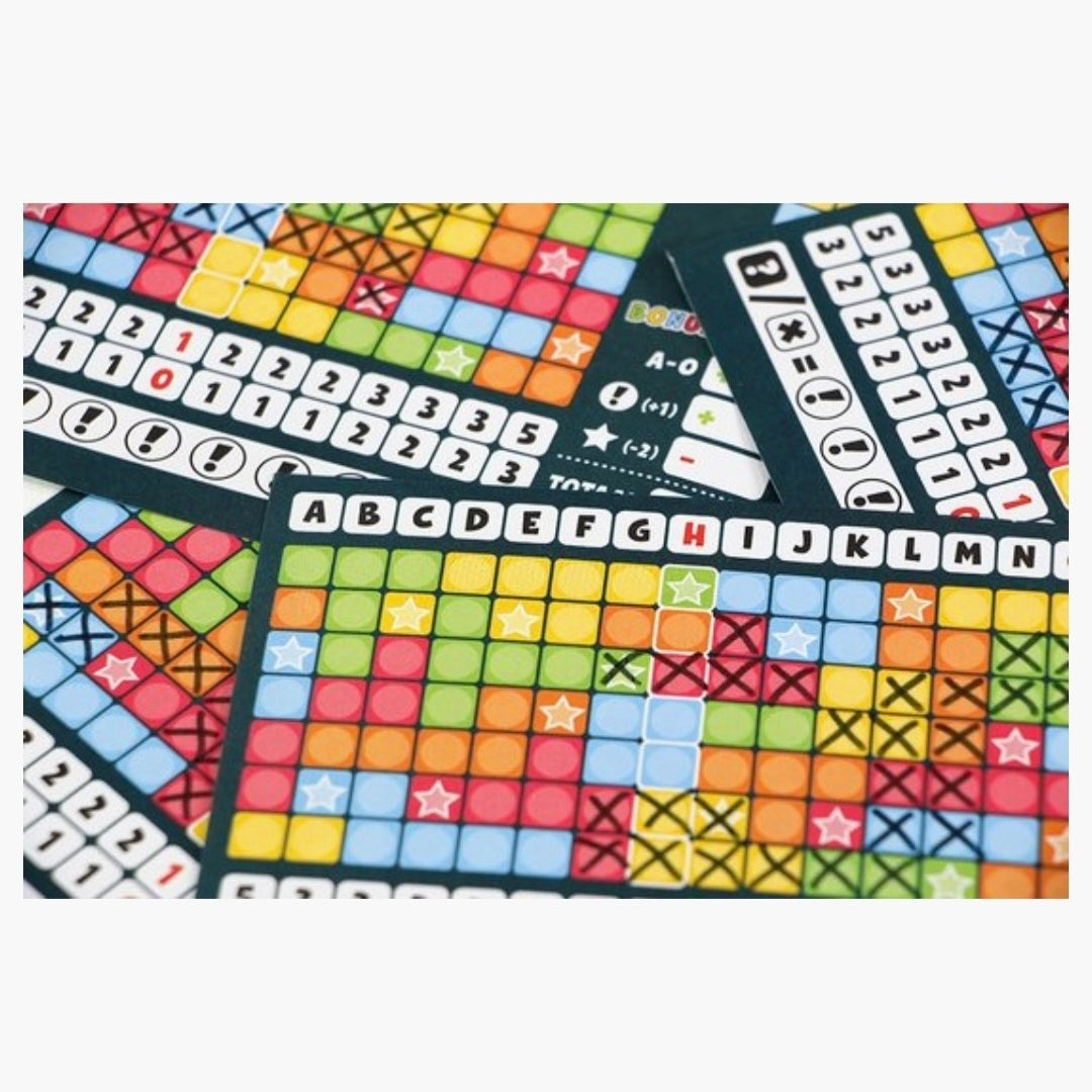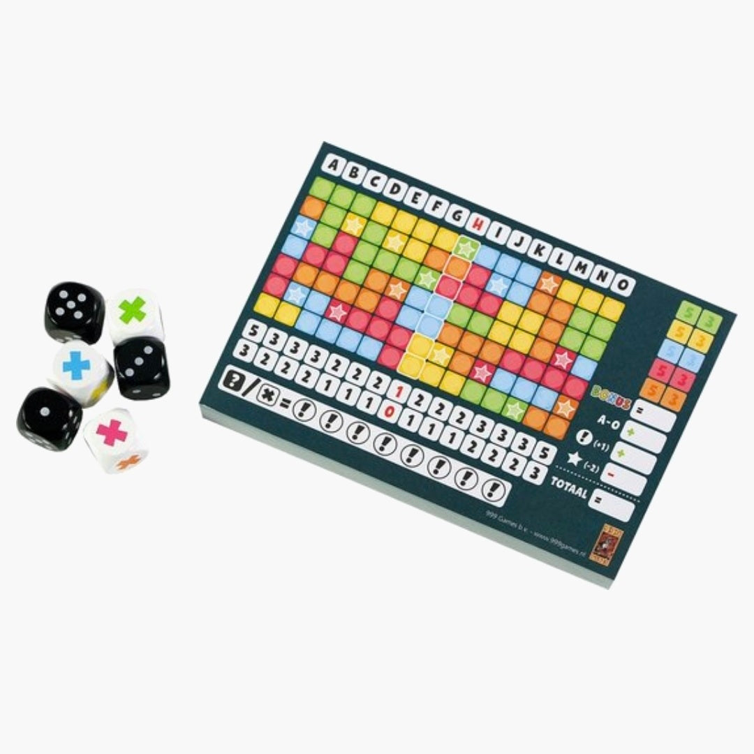 In dit spel kies je na jouw worp dobbelstenen uit om vakjes mee aan te kruisen. Het doel is om op een slimme manier kruisjes te zetten om gekleurde vlakken en/of kolommen te vullen. Hiermee oefen je ruimtelijk inzicht en patroonherkenning.