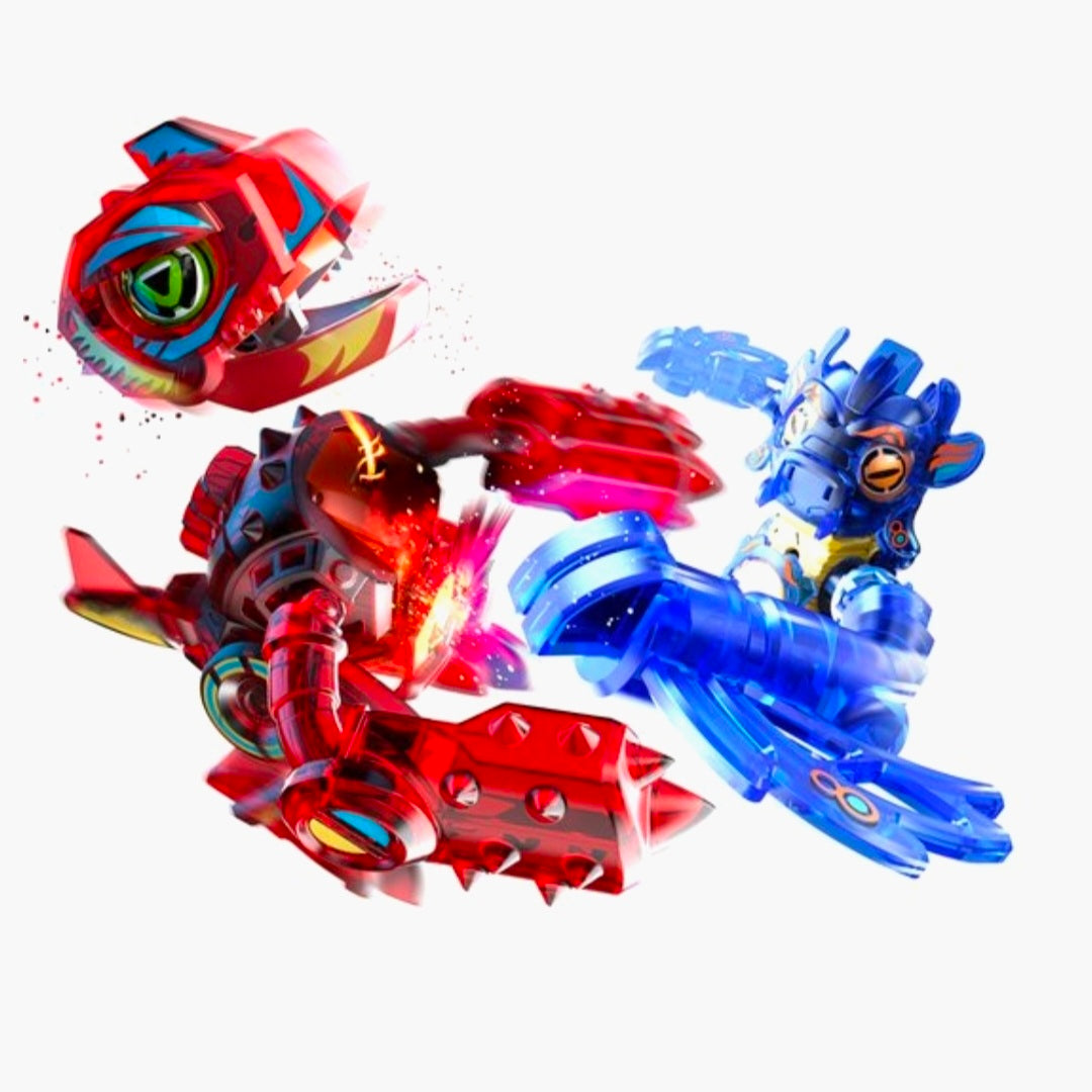 In deze Deluxe set vind je twee exclusieve strijders, twee Battle Stations en een exclusieve Battle Arena, waar 2, 3 of 4 vechters op geplaatst kunnen worden voor een mega gevecht! Beweeg je Biopod strijder in verschillende richtingen voor aanval en verdediging. Het scorebord registreert maximaal 5 gevechtsrondes. Spaar alle strijders en ga het gevecht aan met vrienden!