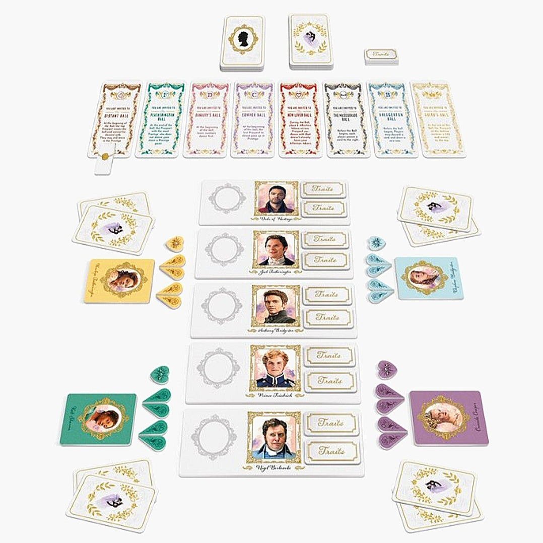 De acht balkaarten worden geschud en boven de huwelijkskandidaten geplaatst. Het uitnodigingsfiche wordt op de meest linkse kaart geplaatst. De Lady Whistledownkaarten worden geschud en boven de balkaarten geplaatst, alsook de danskaarten. Elke speler krijgt twee danskaarten en dan kan het spel van start gaan.