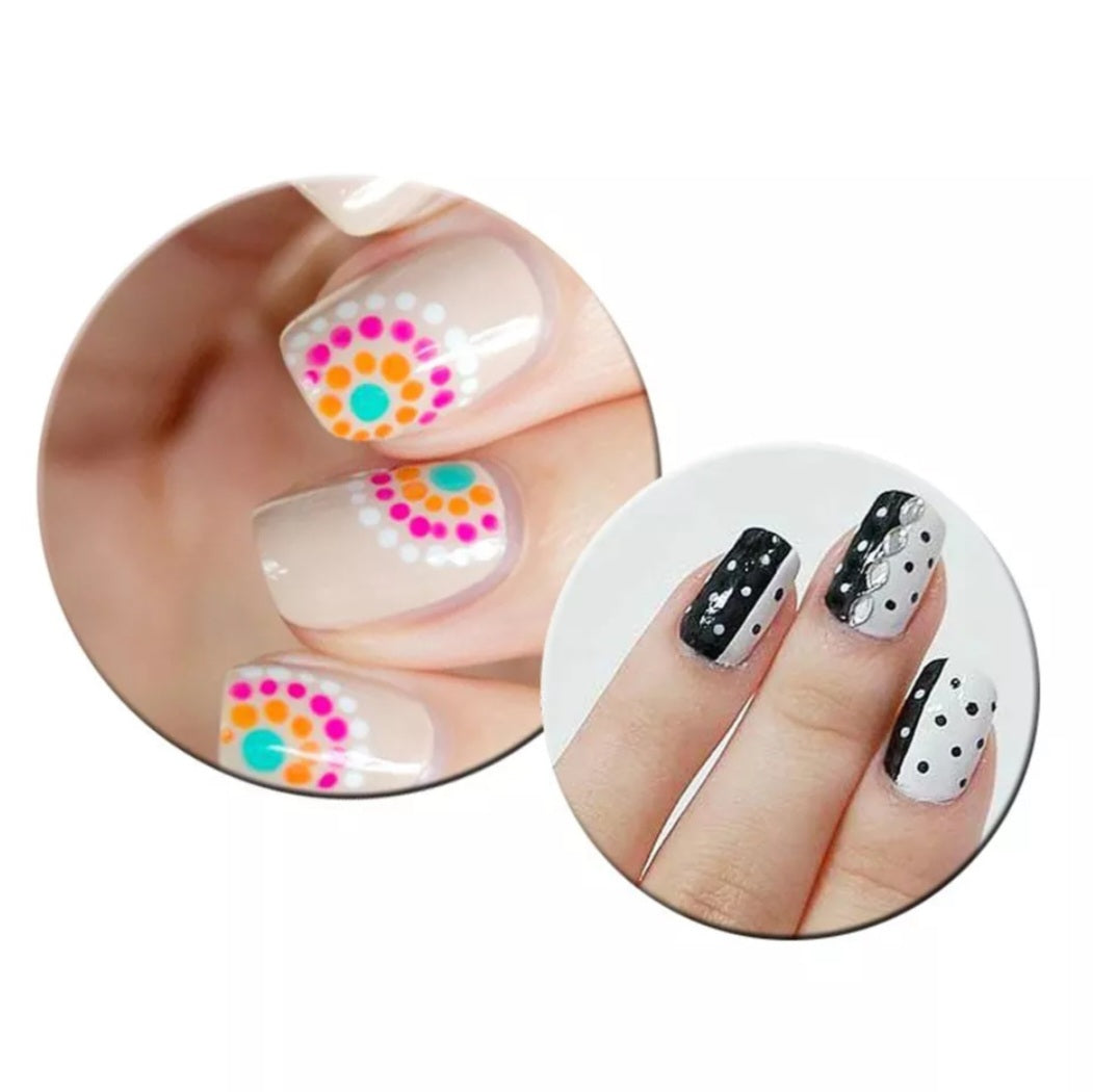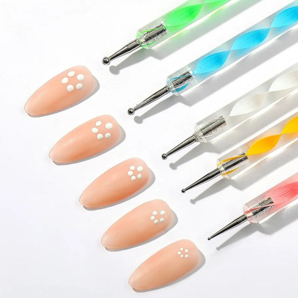 Deze druppelpennen bestaat uit 5 delig set. Verschillende kleuren. Elk druppelpen hebben een ander maat en aan de andere zijde hebben ieder dezelfde maat. Hiermee kun je mooie dots maken voor uw nail art effecten of je kunt er makkelijk strassteentjes mee oppakken. Voor thuisgebruik of professioneel.