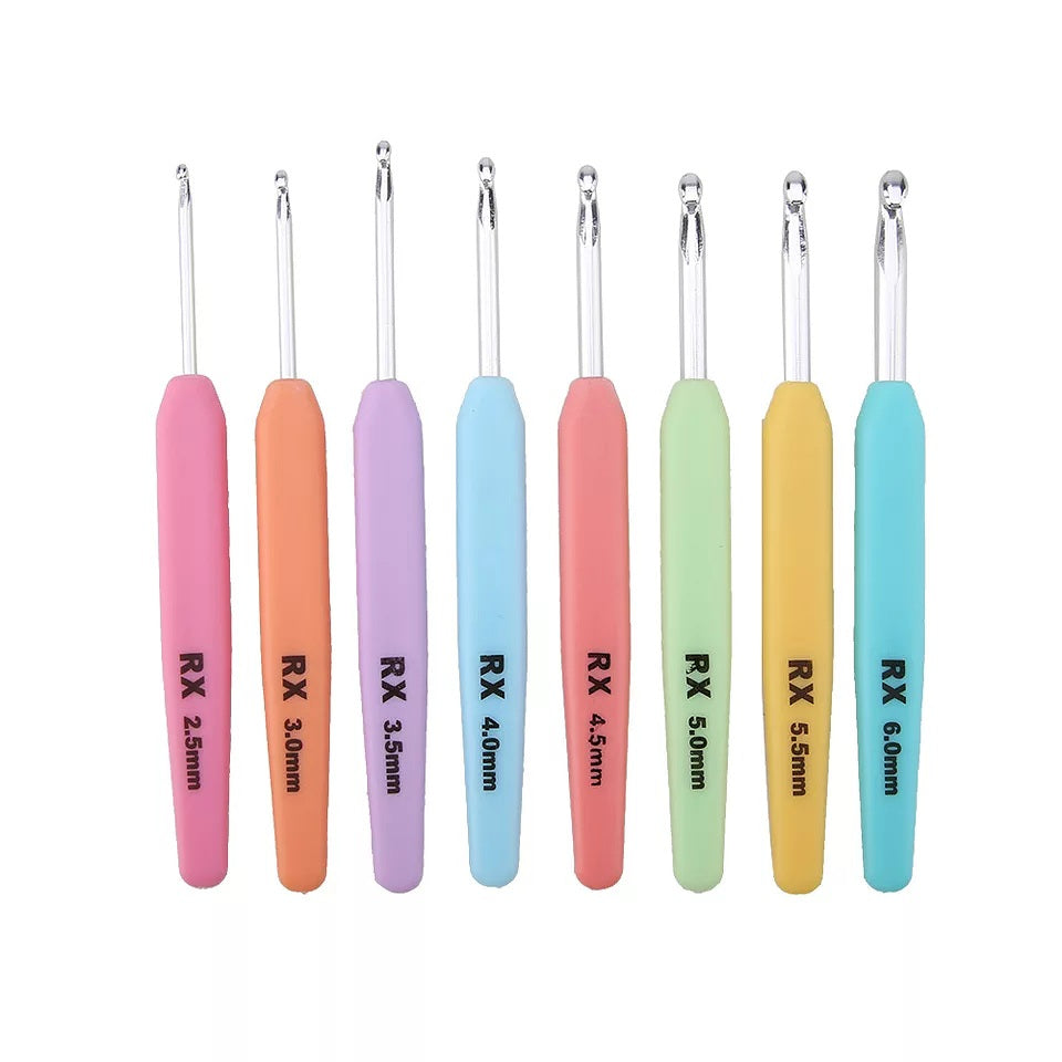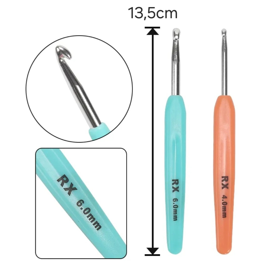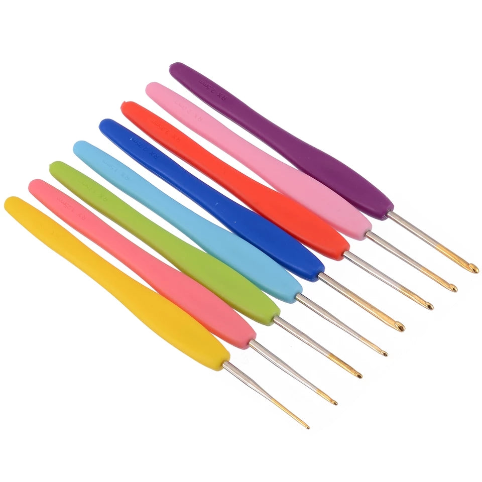 Deze ergonomische haaknaalden zijn gemaakt van hoogwaardige roestvrij staal en aluminium. Ze zijn erg sterk en lichtgewicht en hebben veelkleurige handvatten. Ze zijn erg glad en geschikt voor zware of dunne lijnen. Het handvat is gemaakt van zacht plastic materiaal.