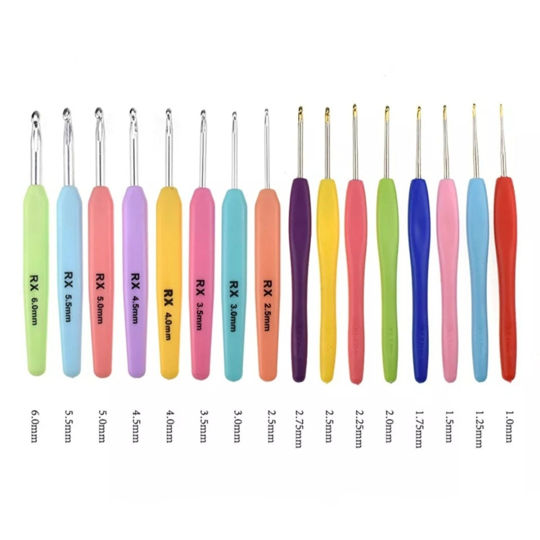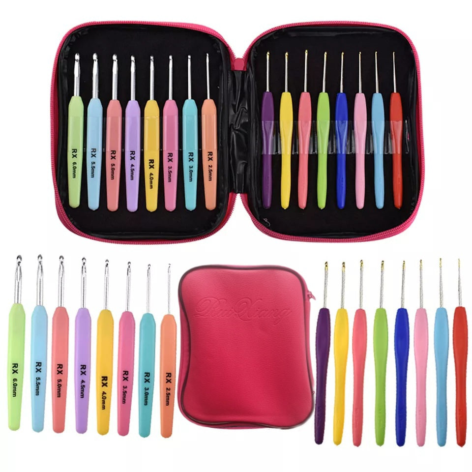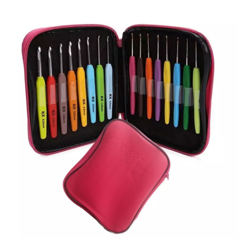 Deze ergonomische zachte haaknaald zorgt ervoor dat u urenlang kunt haken zonder vermoeidheid, pijn of krampen aan handen of duimen. Elk handvat staat duidelijk maat op zodat alles overzichtelijk te zien is. Alles zit handig in een zachte lederen tas, zodat u al uw haken in perfecte staat kunt plaatsen. U kunt snel degene nemen die u wilt. Perfect voor op reis, haak waar u maar wilt, op het vliegveld, in een park, thuis, vakantie of op het werk.