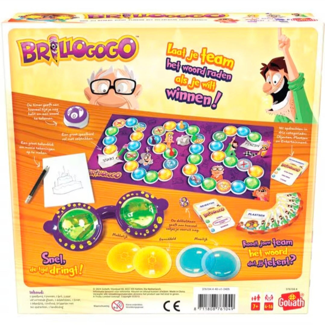 Je speelt Goliath Brillogogo door een voorwerp te tekenen van het opdrachtkaartje. Maar niet zonder de bril met vervormende glazen op! Laat je team het woord raden als je wilt winnen.