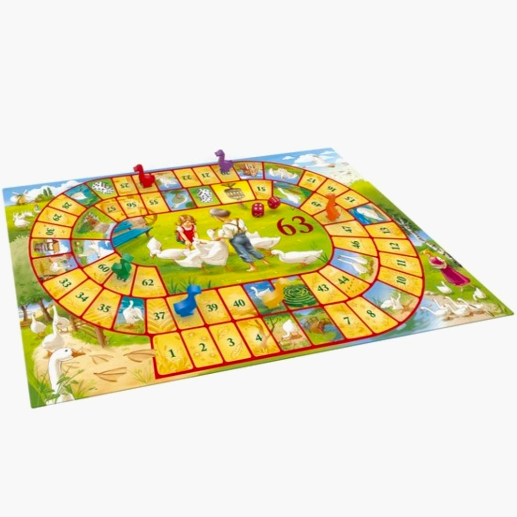 Dit oud-Hollandse Ganzenbord spel brengt plezier voor de hele familie! Wat is het doel bij ganzenborden? Breng als eerste jouw gans door het doolhof naar de finish. Maar pas op, ontwijk de obstakels die je onderweg tegenkomt! Dit Ganzenbord spel is geschikt voor het hele gezin.