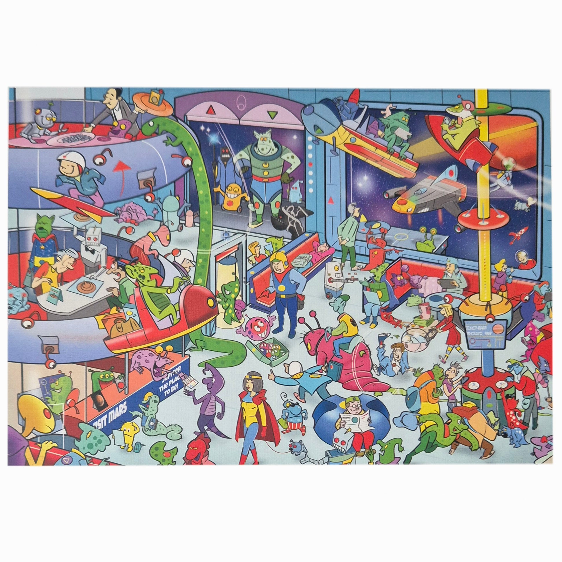 Het is chaos in de ruimte en er gebeurt van alles. Van serverende robots tot aan ontsnapte aliëns. Na het maken van deze puzzel valt elk stukje ineens op zijn plek. Een regenachtige dag wordt een stuk leuker met het maken van deze puzzel.