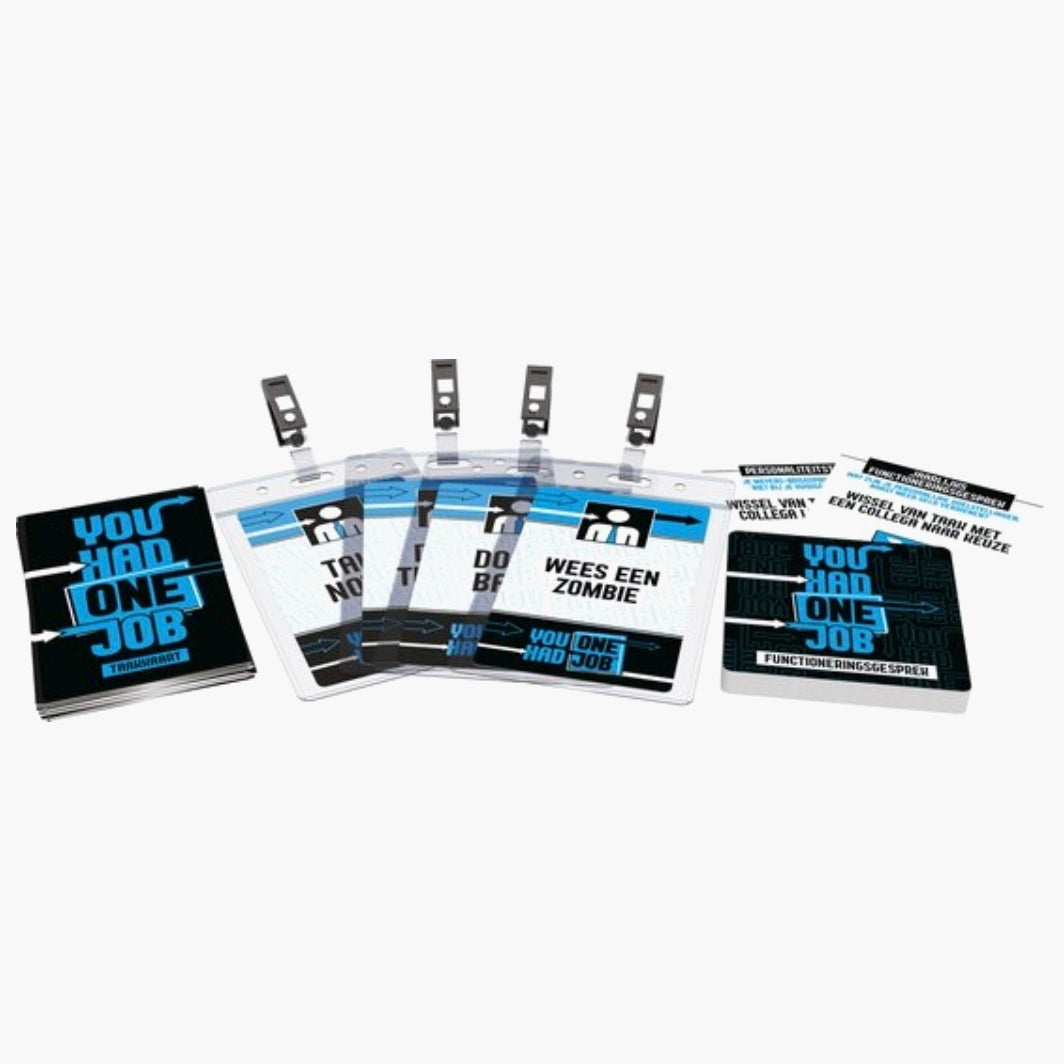 Met 3 spelers of 2 wordt het spel lastiger. Alle collega’s moeten hun naamplaatjes omdraaien, zodat hun taak niet langer zichtbaar is.