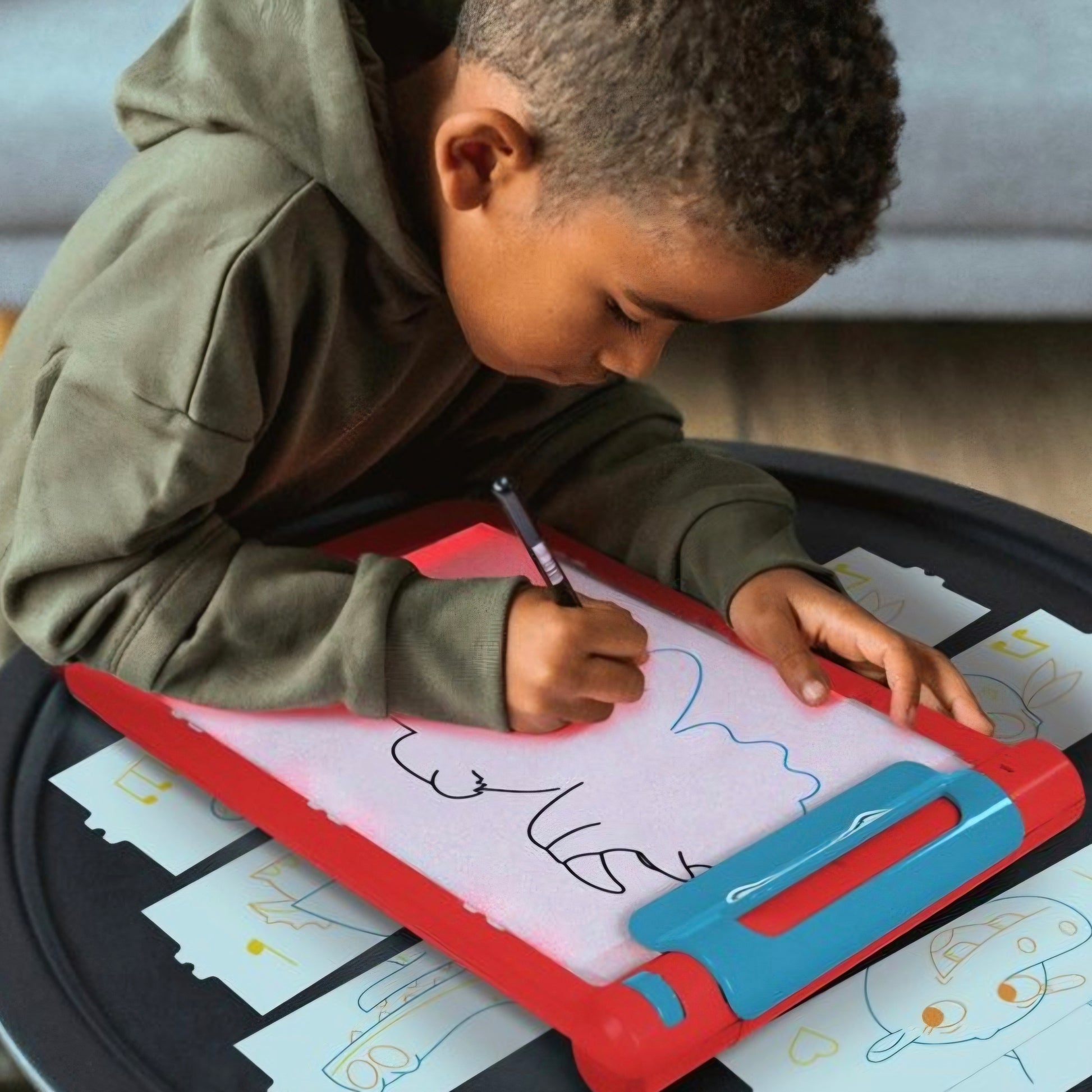 Door het slimme lichtsysteem kunnen kinderen in 3 stappen het personage tekenen.