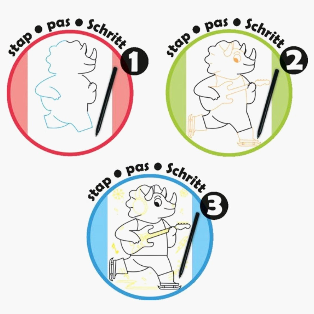 Kinderen combineren en tekenen de verschillende sjablonen met veel plezier in 3 eenvoudige stappen. Door de stappen raken de kinderen bekend met het tekenen van personages: 1) omtrek, 2) uitdrukkingen en 3) laatste details. Met het slimme stapsgewijze lichtsysteem kunnen de kinderen heel eenvoudig een leuk personage tekenen waarmee ze hun kamer kunnen versieren of dat ze kunnen weggeven.