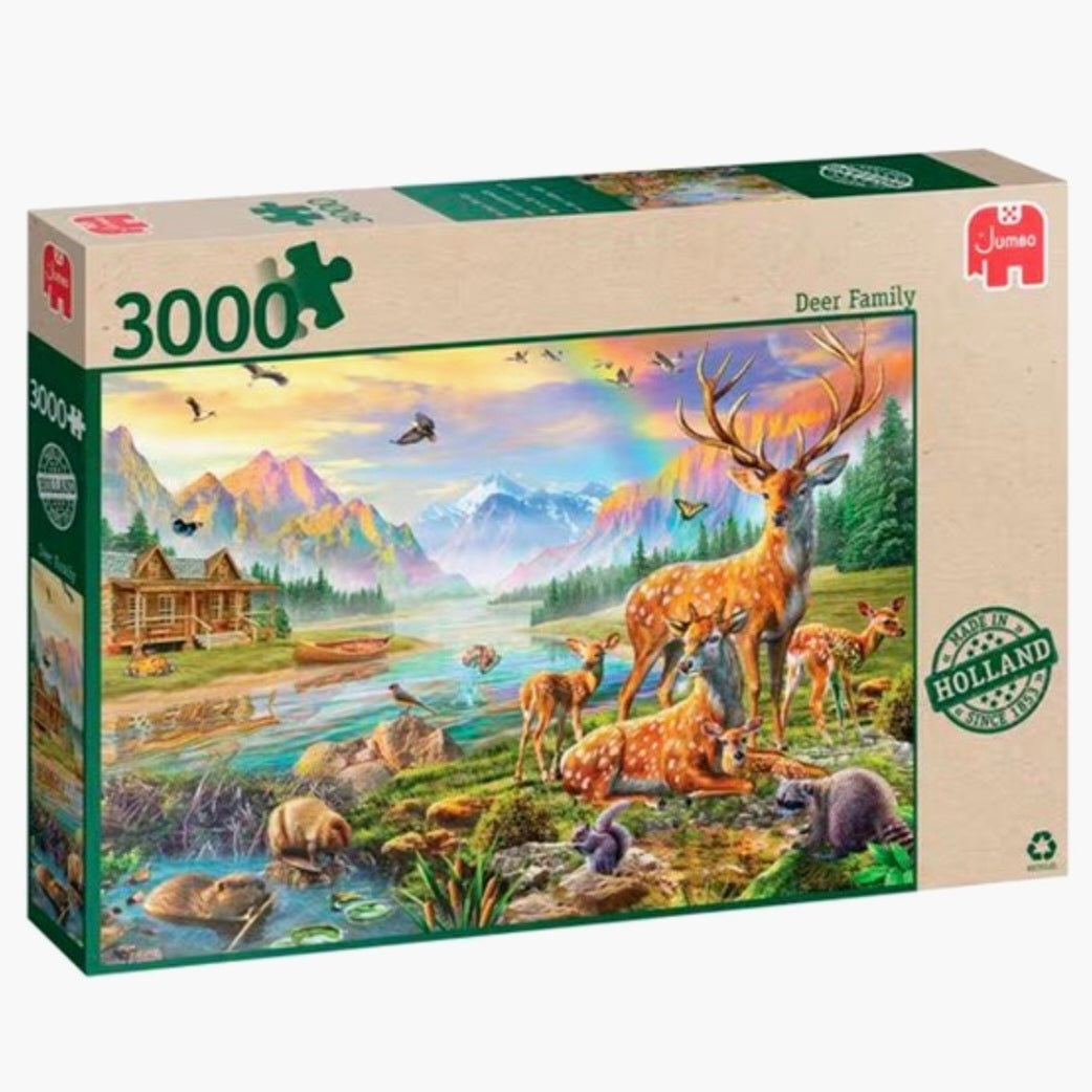 Leg de mooie plaat van de Jumbo Premium Collection Deer Family Puzzel. De puzzel bevat 3000 stukjes en is geschikt vanaf 12 jaar.