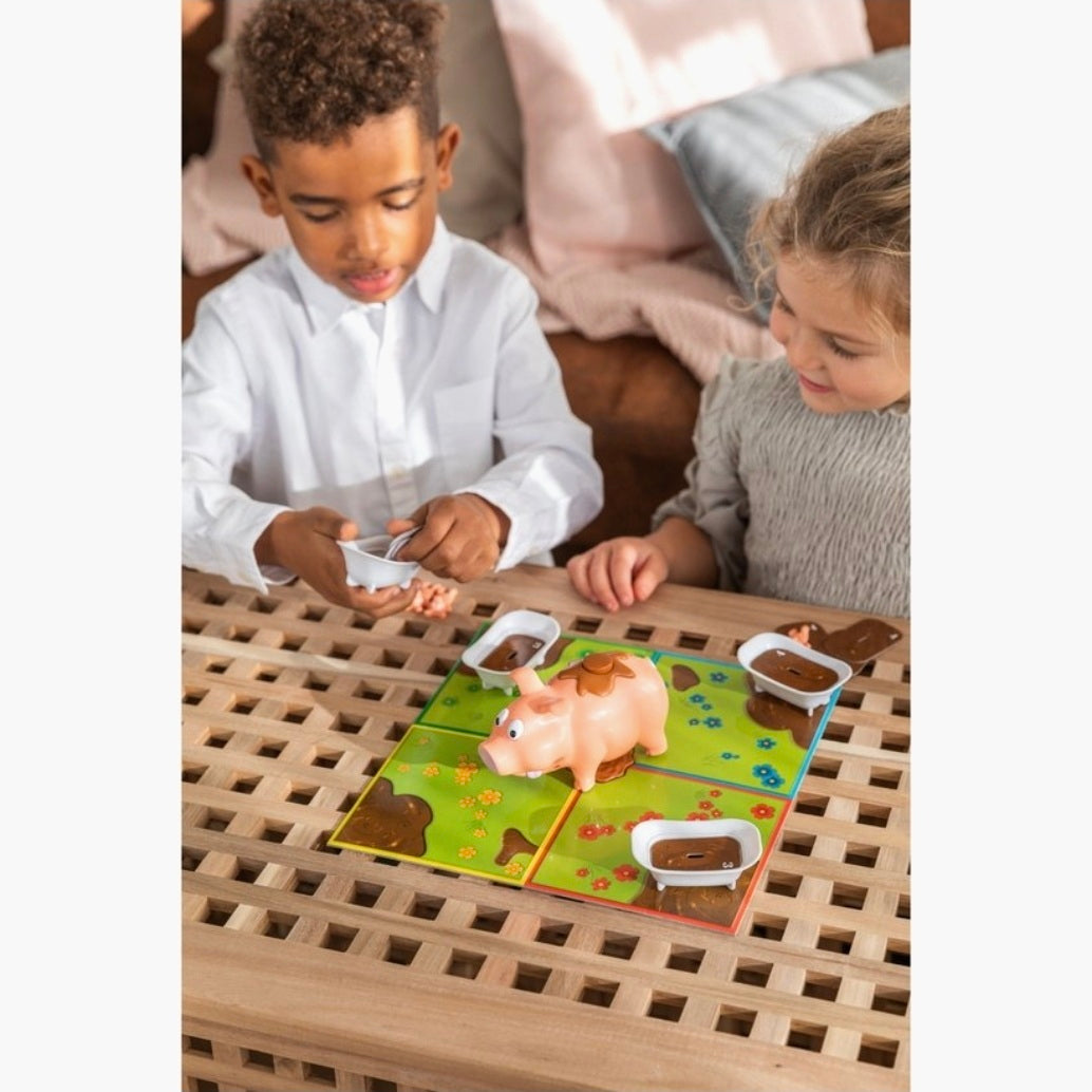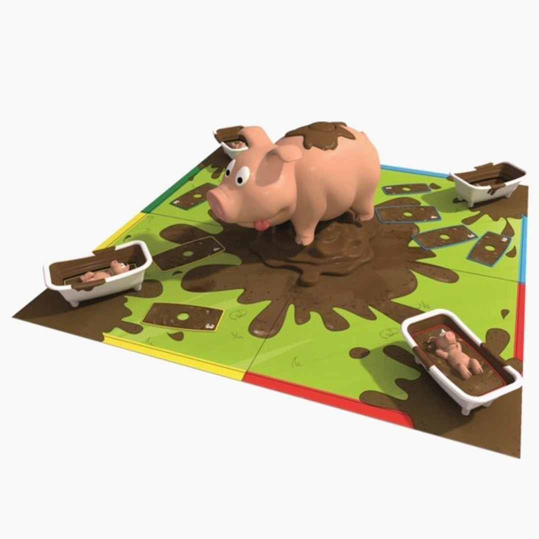Het doel van dit spelletje is om als eerste 4 kaartjes te verzamelen zodat jouw varkentje boven zijn modderbadje uitkomt! Draai om de beurt aan het grote varken in het midden van het bordspel tot hij stilstaat. Het varken kan nu een aantal verschillende geluiden maken. Knort hij, dan mag er een kaart gepakt worden. Laat hij een scheet, dan moet er een kaart ingeleverd worden. Wie als eerste de 4 kaarten heeft verzameld, wint het spel!