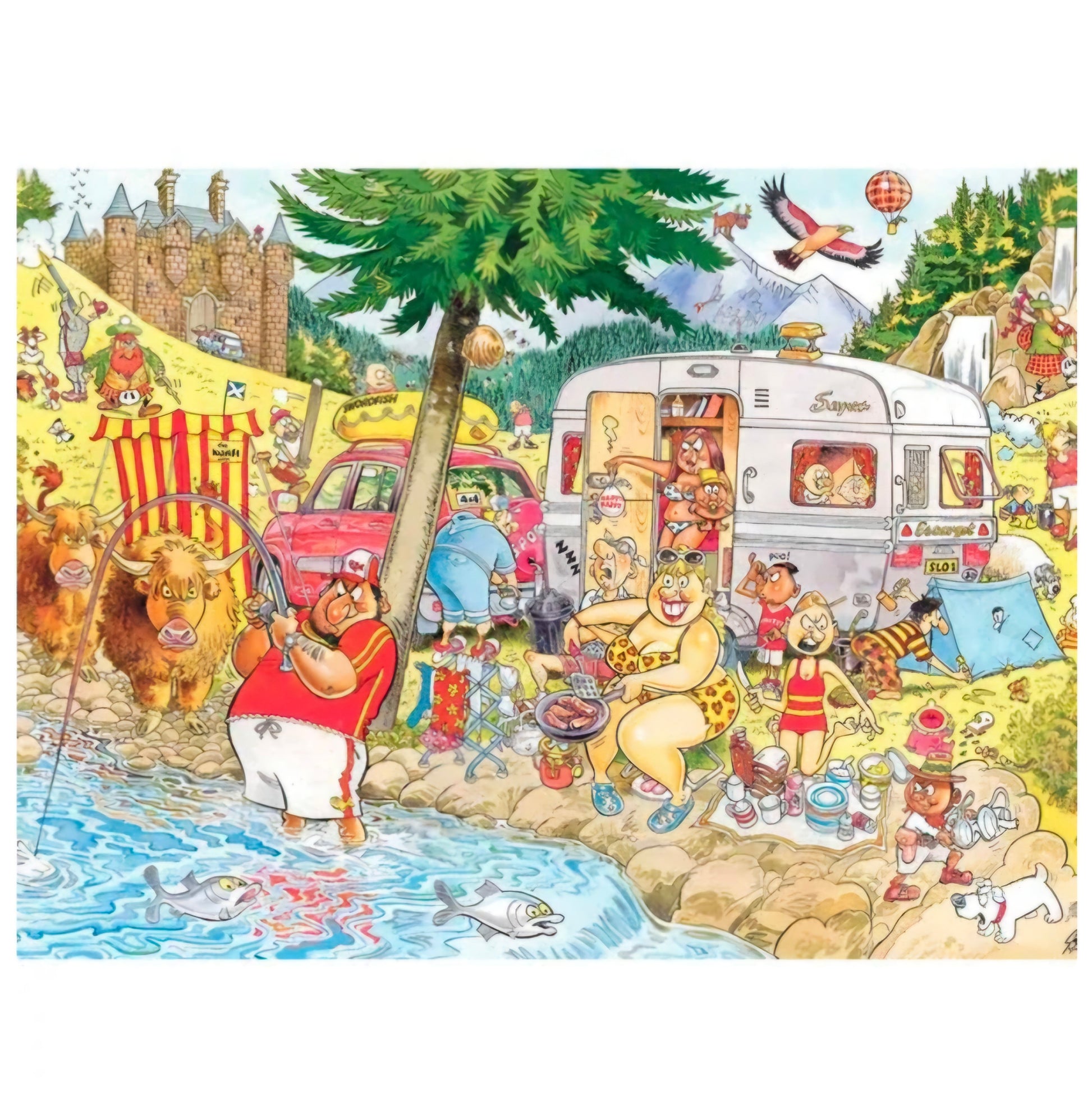 Ga de uitdaging aan en leg alle stukjes op de juiste plaats. Zo zie je de Jumbo Wasgij? Mystery 6 Camping Commotion! Puzzel steeds meer tot leven komen. De puzzel van 950 stukjes is geschikt voor puzzelaars vanaf 12 jaar.