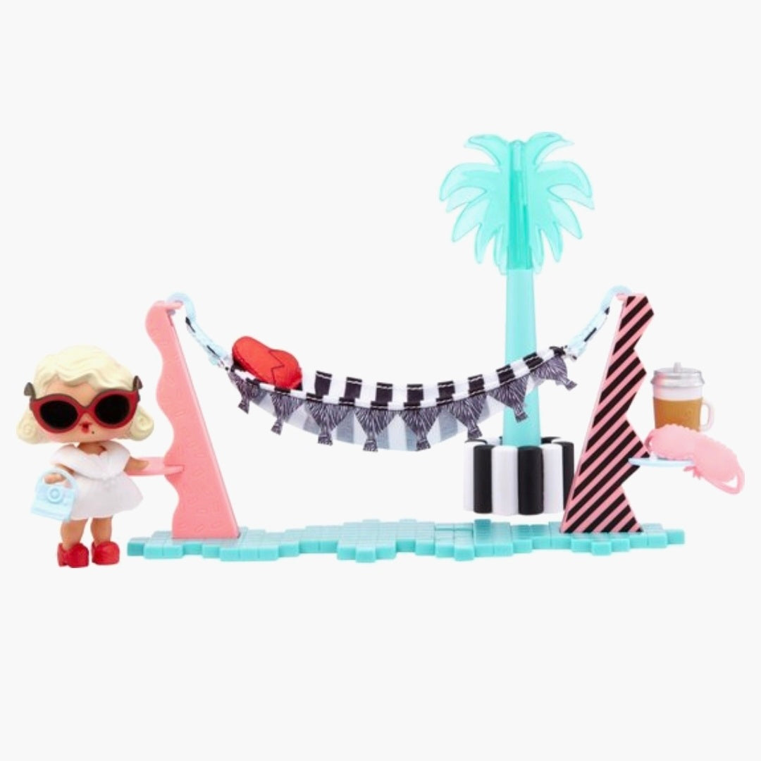 De L.O.L. Surprise! Vakantielounge-speelset bevat 8 verrassingen en een exclusieve pop