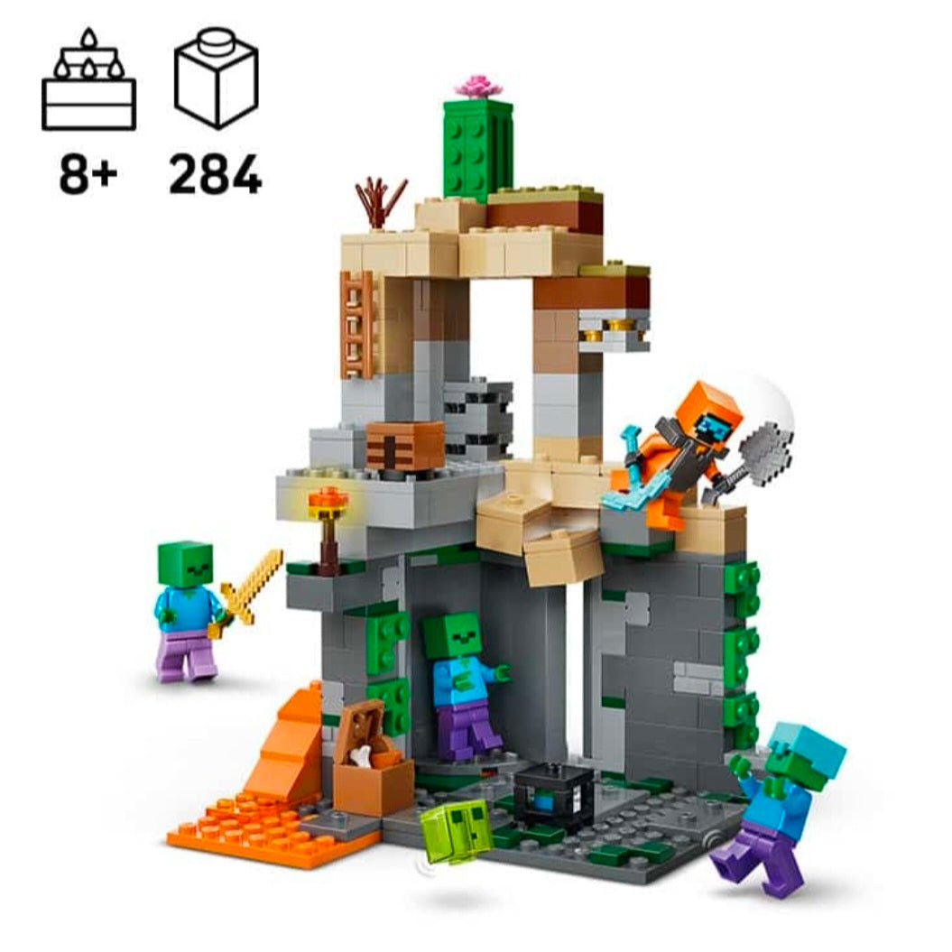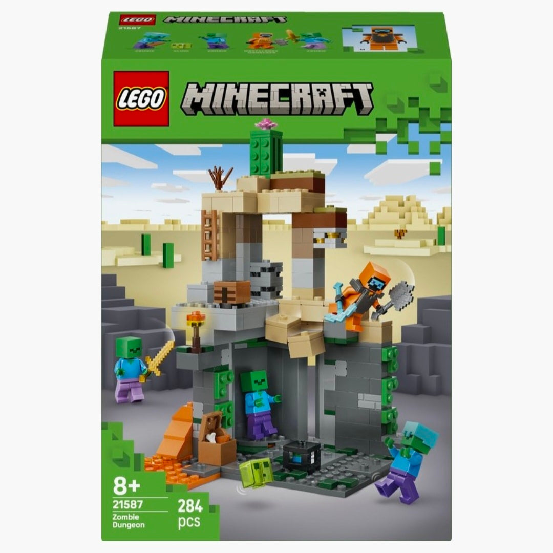 Neem het op tegen een horde Minecraft® zombies met de LEGO® Minecraft Zombiekerker (21587) bouwset voor jongens en meisjes vanaf 8 jaar. Kinderen gaan op pad in een zombiekerker vol Minecraft personages in een authentieke omgeving uit de game met leuke functies en accessoires. De actie speelt zich af in het Minecraft woestijnbioom en de set bevat een Woestenijdwaler met een diamanten pikhouweel, een knots en een netherieten harnas, plus een slijm en 3 zombies, waaronder een zombie met een betoverde broek en gouden zwaard en een zombie met diamanten helm. Functies omvatten een draaibare kamer vol met zombies en een schuifelement die een vallende rots activeert. Andere accessoires voor fantasierijk speelplezier zijn een werkbank, fakkel enkist met brood, een bot en bedorven vlees. Deze set is een geweldige cadeautip voor Minecraft spelers en LEGO fans. En met de LEGO Builder app kunnen kinderen vol vertrouwen bouwen: inzoomen, draaien in 3D en hun voortgang bijhouden met de eenvoudig te volgen digitale instructies. De set bevat 284 onderdelen.