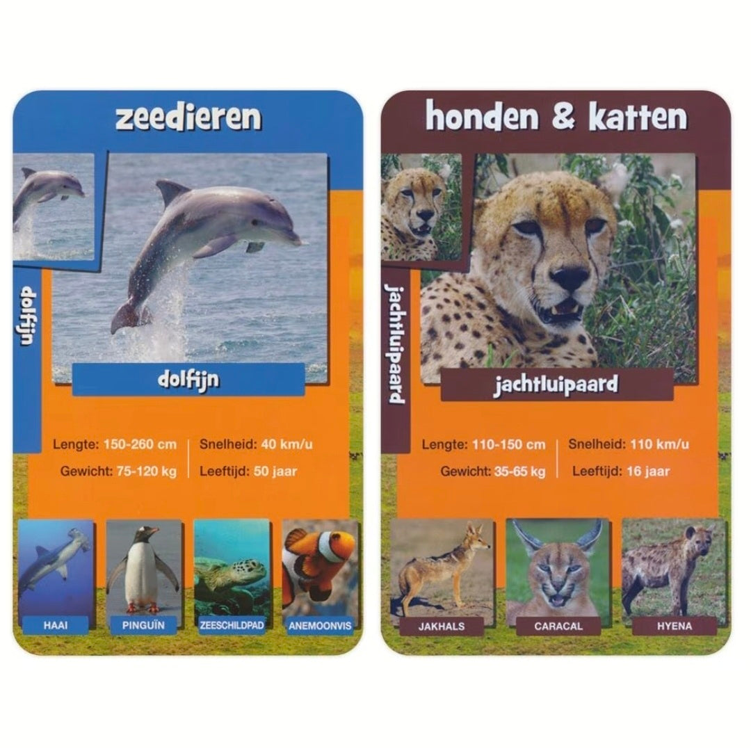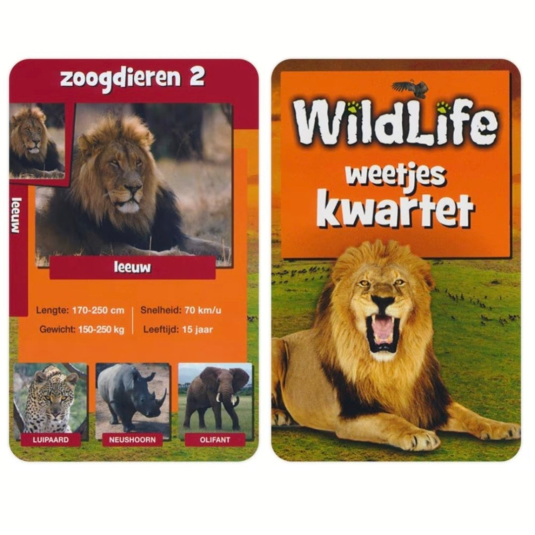 Hoeveel Wildlife kwartetten weet jij bij elkaar te winnen? Wie de meeste dieren setjes bij elkaar heeft wint het spel. De kaarten zijn extra groot, hierdoor zijn de afbeeldingen makkelijk te herkennen en kunnen ook kleuters het kwartet spelen. Op de afbeeldingen staan echte Wildlife dieren, zoals: apen, olifanten en tijgers. Daarnaast staan er feitjes over de dieren op de kaarten.
