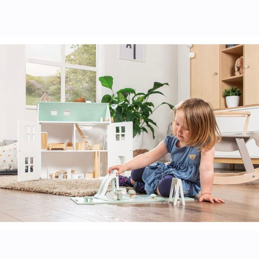 Je kunt deze Poppenhuis uitbreiden met meubels en tuin accessoires. Net als op foto
