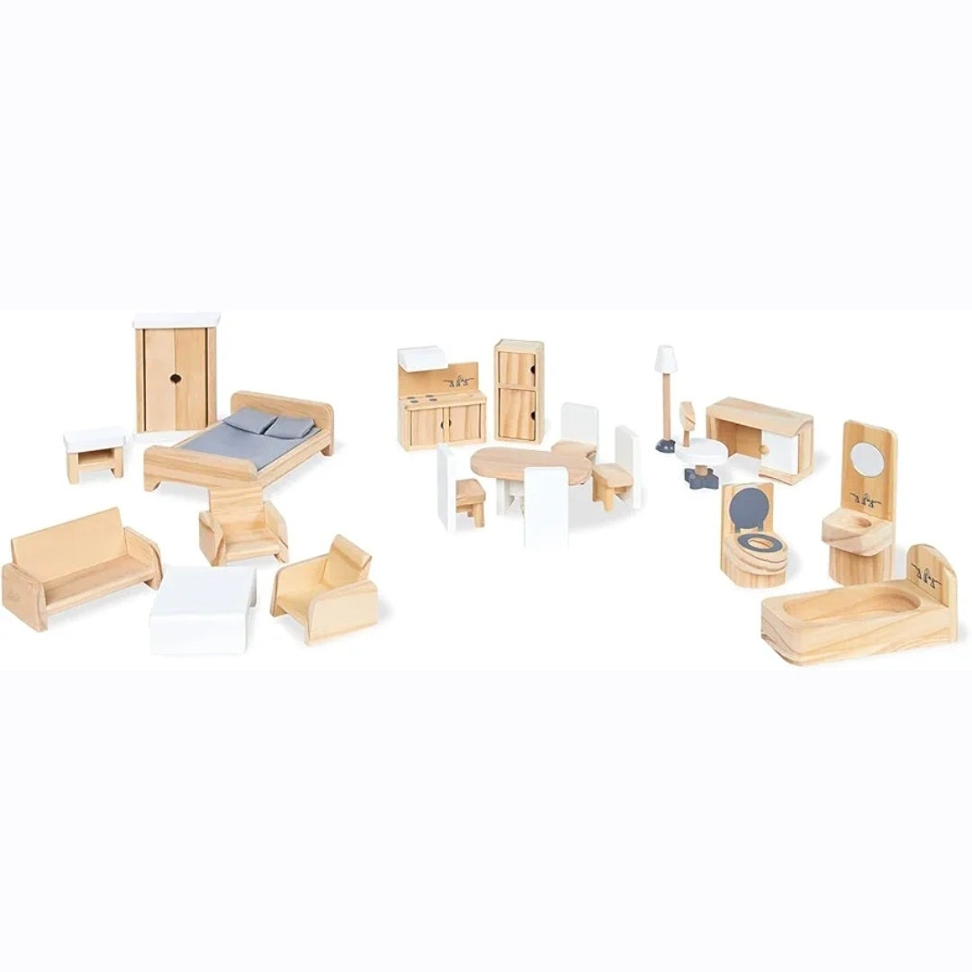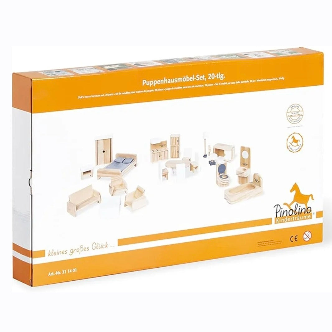 Pinolino: Poppenhuis naturel houten Meubels - 20-Delig