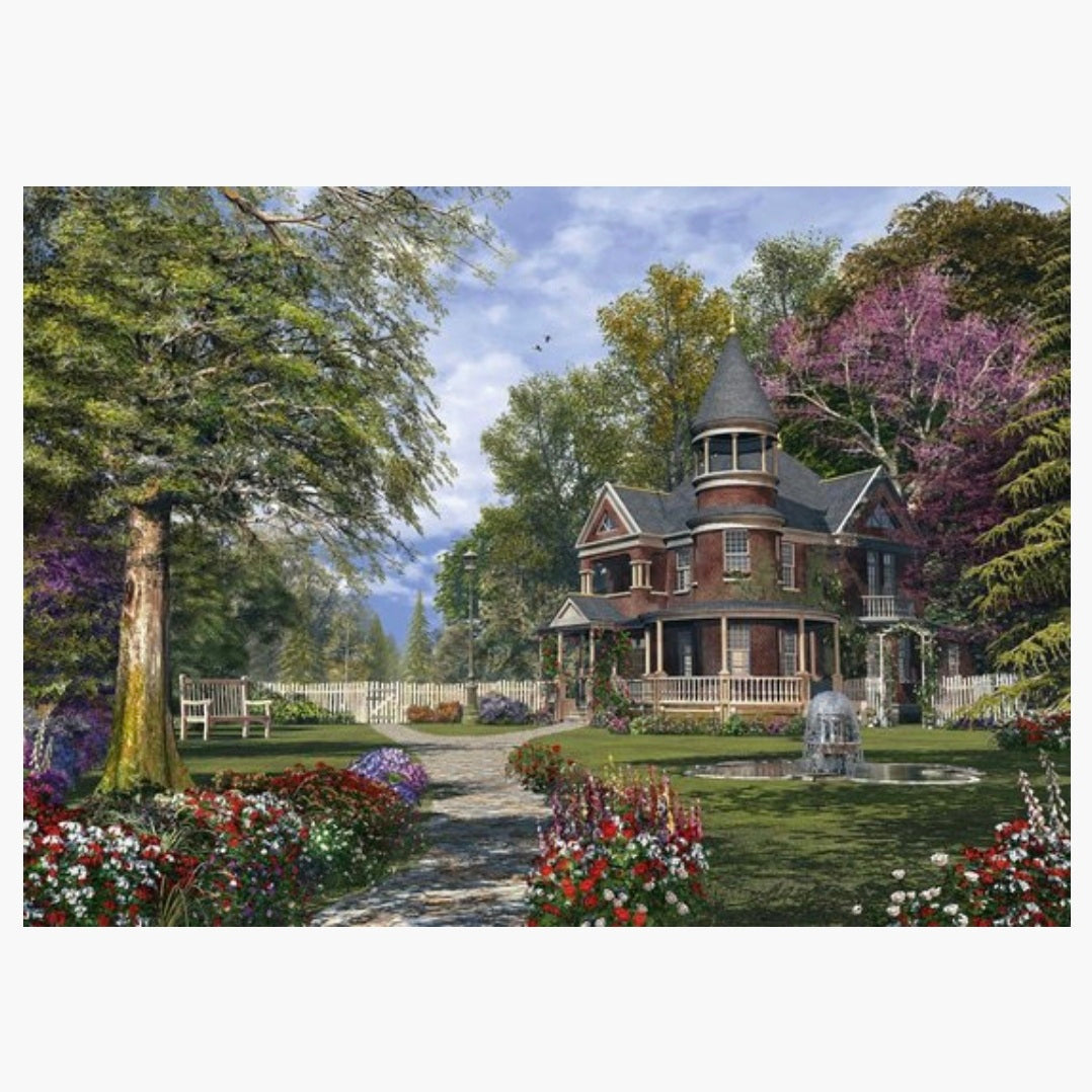 Puzzel met een romantische afbeelding van Dominic Davison, een Engelse kunstenaar. Dominic's liefde voor het platteland en de architectuur in zowel Engeland als Amerika resulteert in deze charmante afbeeldingen van huisjes, herenhuizen en koloniale herenhuizen.