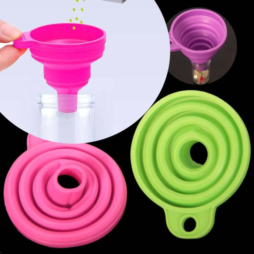 Ontdek onze opvouwbare en multifunctionele siliconen trechter, een handige metgezel voor diverse taken! Of je nu bezig bent met Diamond painting, vloeistoffen giet in de keuken, of onderweg bent in de auto of op je scooter, deze trechter maakt elke taak moeiteloos en efficiënt.
