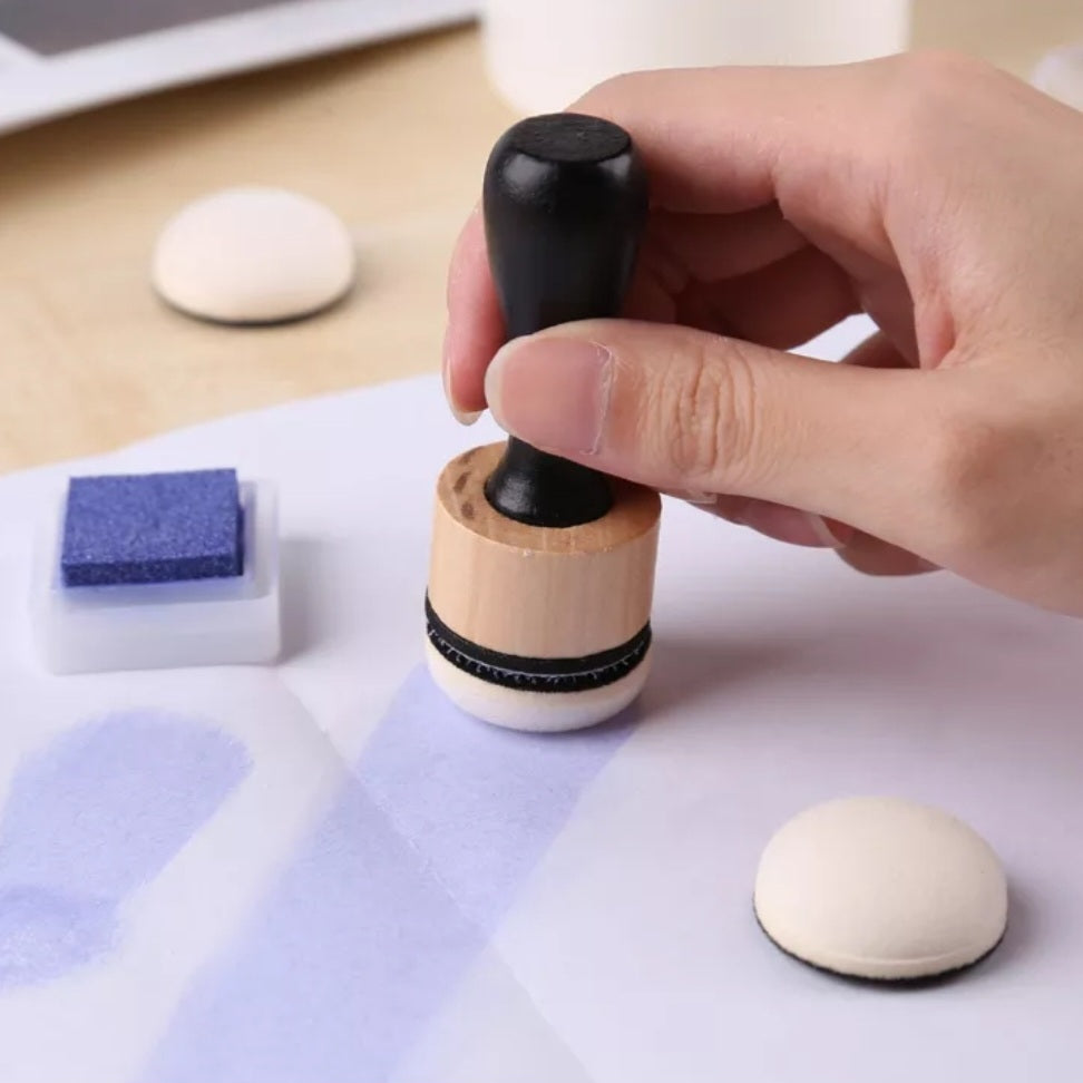 De sponshouder heeft een mooi houten handvat en is 7,5cm. Bolle en platte spons opzet stukken kun je makkelijk bevestigen en verwijderen door de klittenband. Het is makkelijk in gebruik. De sponsjes hebben diameter van 3,3cm en 3cm. De schuimsponzen zijn gespecialiseerd gemaakt om inkt te absorberen.
