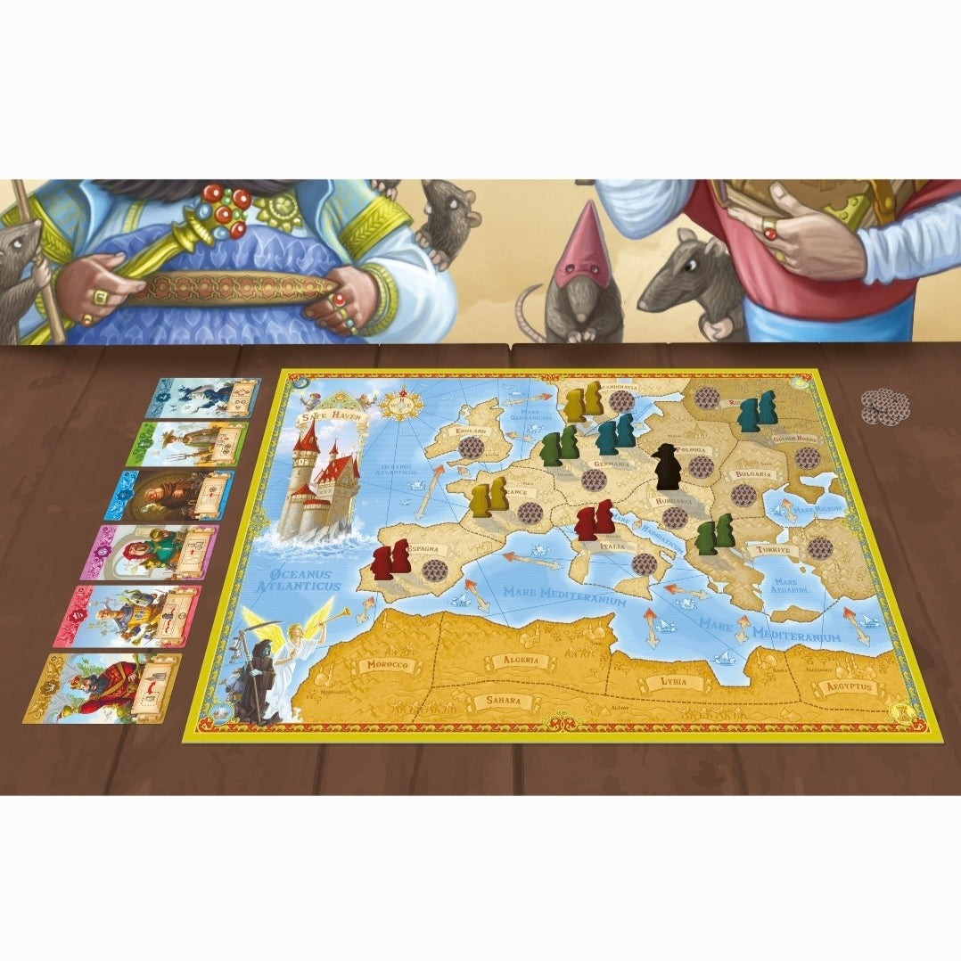 In Rattus Big Box speel je door het uitgebreide bord niet alleen in Europa, maar ook in Afrika. Daarnaast bevat Rattus Big Box de Pied Piper uitbreiding, de Africanus uitbreiding, de Academius uitbreiding en de splinternieuwe uitbreiding Guilds and Inns. Alsof dat allemaal niet genoeg is, bevat de Rattus Big Box ook nog een bonusmodule. Omdat alle uitbreidingen met elkaar kunnen worden gecombineerd, kan Rattus op eindeloos veel manieren worden gespeeld.