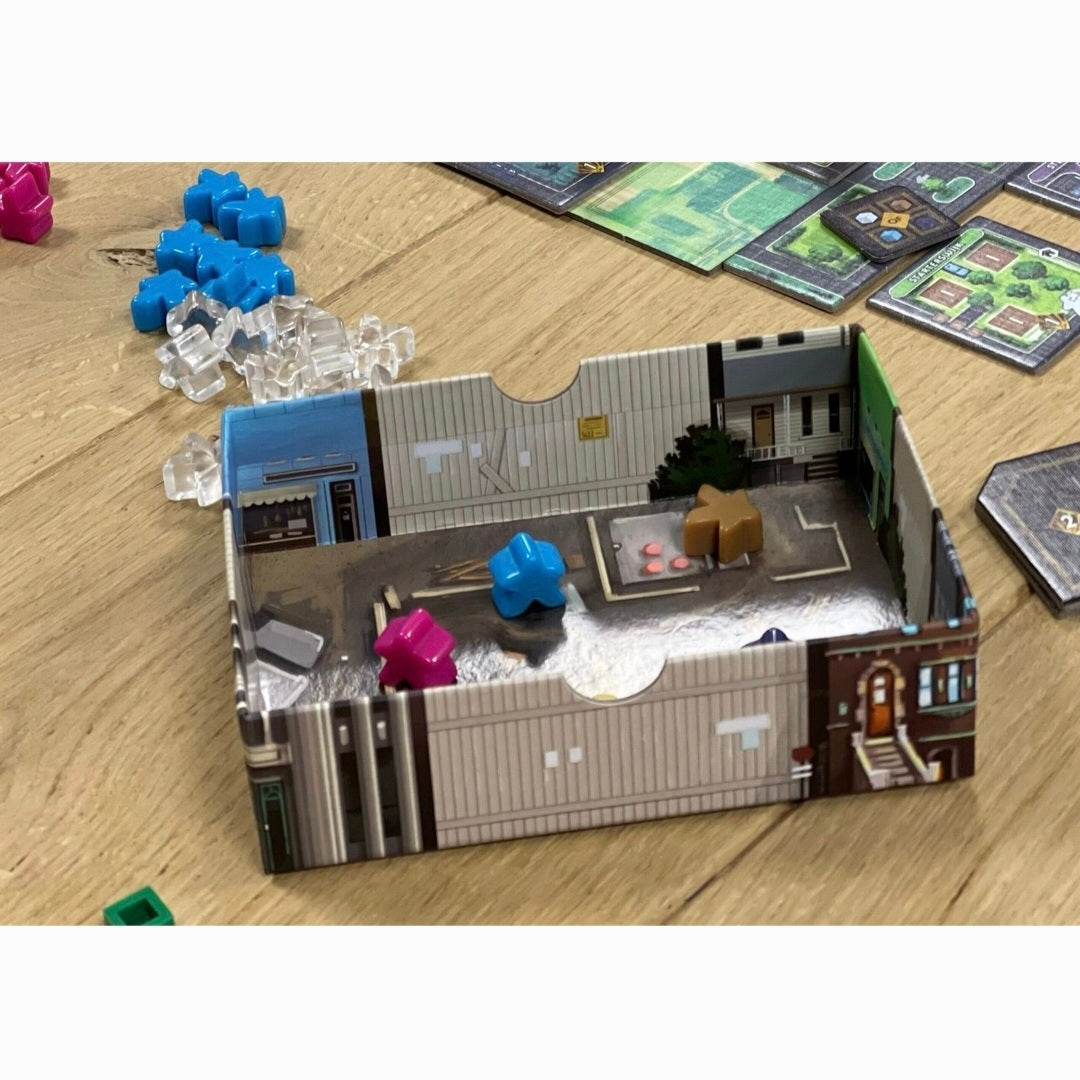 In Rolling Heights rollen spelers arbeiders in de vorm van meeples. Staande meeples werken die dag hard en leveren speciale acties en bouwmaterialen, terwijl liggende meeples niets opleveren. Je kunt altijd je geluk op de proef stellen voor betere worpen, maar je kunt daarmee ook waardevolle materialen verliezen die je nodig hebt om nieuwe gebouwen te bouwen. Door gebouwen te voltooien, krijg je prestige en nieuwe arbeiders om je te helpen nog grotere gebouwen te bouwen, waaronder wolkenkrabbers