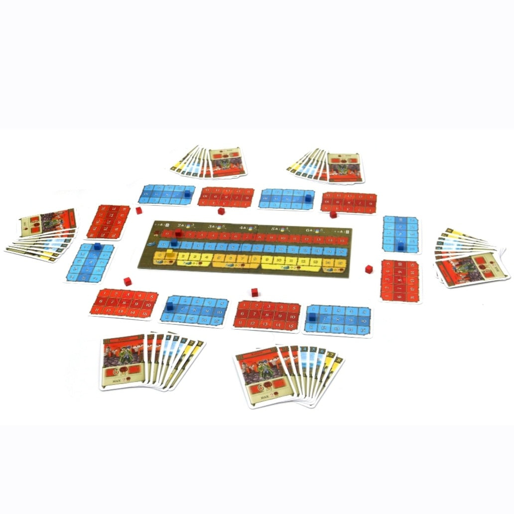 In Santo Domingo probeer je jouw 8 actiekaarten slim in te zetten. Dit doe je door in het geheim 1 of 2 kaarten uit je hand te kiezen. Alle kaarten worden daarna gelijktijdig opengedraaid. In oplopende nummervolgorde voeren jullie de acties van de kaarten uit. Het is heel belangrijk om in te schatten welke kaarten je tegenstanders gaan spelen. Met de gespeelde kaarten kun je punten of goederen verdienen.